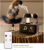 "با ریموت کنترل اختصاصی، تمامی قابلیتهای دستگاه از جمله روشن/خاموش کردن، تنظیم بخور، تغییر رنگ نور و کنترل موسیقی به راحتی و از راه دور در دسترس شماست."