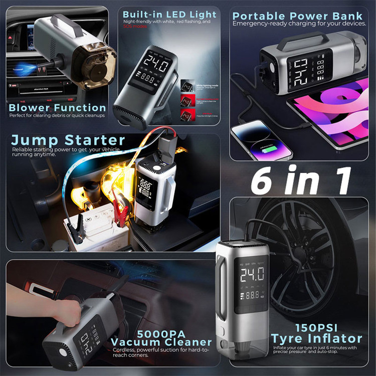 جامپ استارتر مدل ATJ-9366-B یک دستگاه همهکاره برای رانندگان حرفهای است که ترکیبی از پمپ باد قوی، استارتر خودرو، پاوربانک و جاروبرقی قابل حمل را در یک بدنهی فشرده و مقاوم ارائه میدهد.