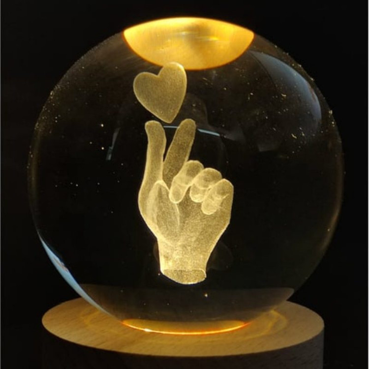 چراغ خواب گوی شیشه ای طرح قلب انگشتی قطر ۵